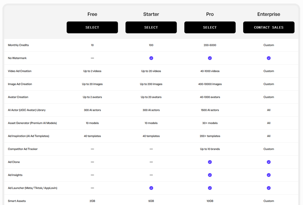 Built-in A/B testing with tracking for ROAS, CTR, and ad spend. It’s designed to help you kill underperforming creatives fast and double down on what’s working.