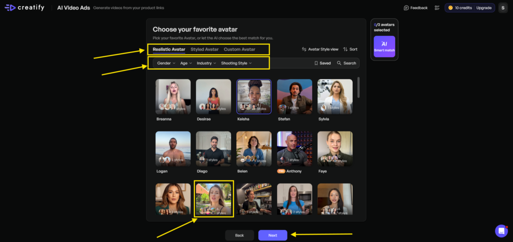 Creatify AI has a wide range of avatar libraries along with styles. Just go through the library and choose according to your needs.